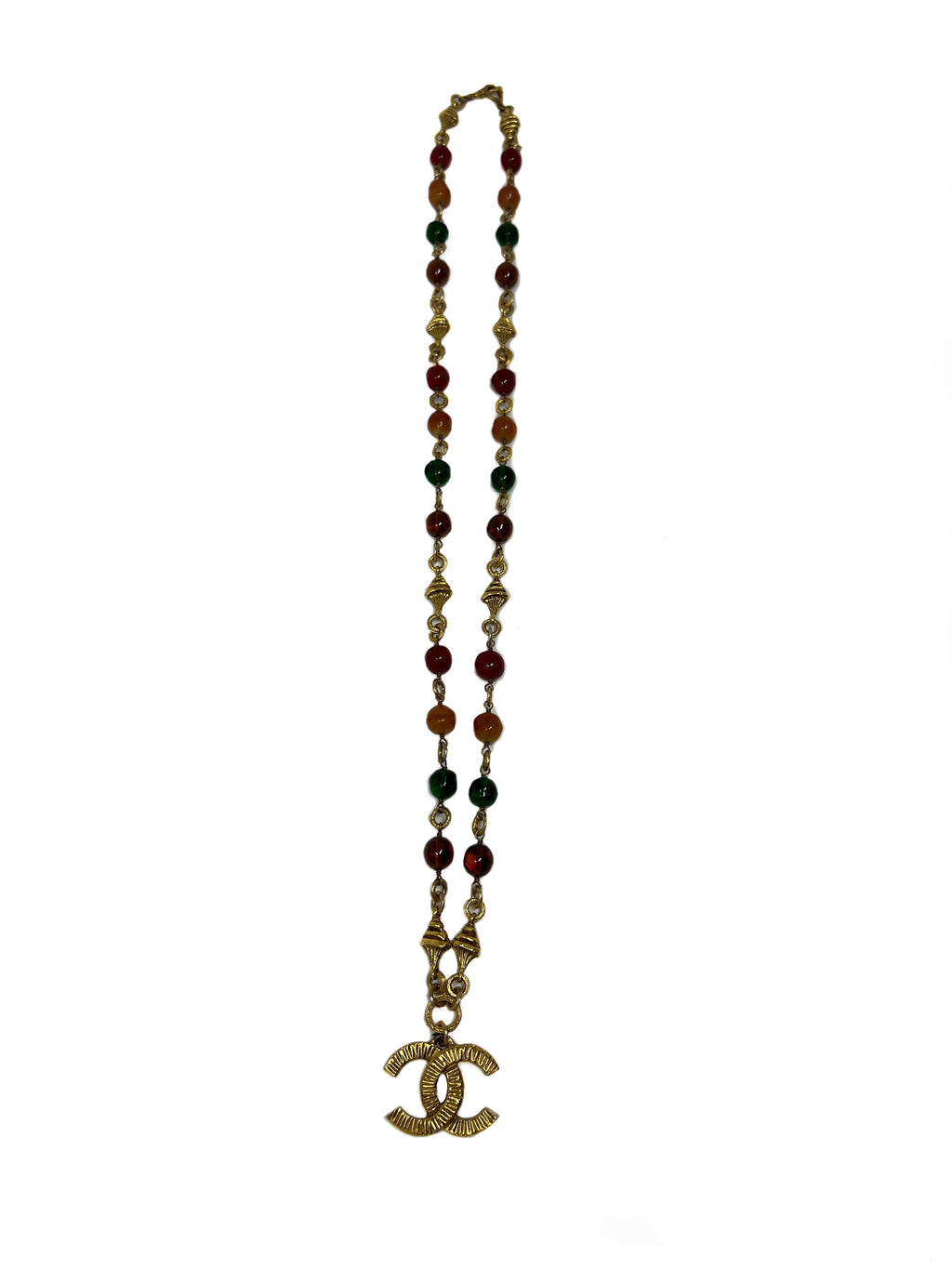 Chanel Vintage Ornate Gripoix Beads & CC Pendant Necklace
