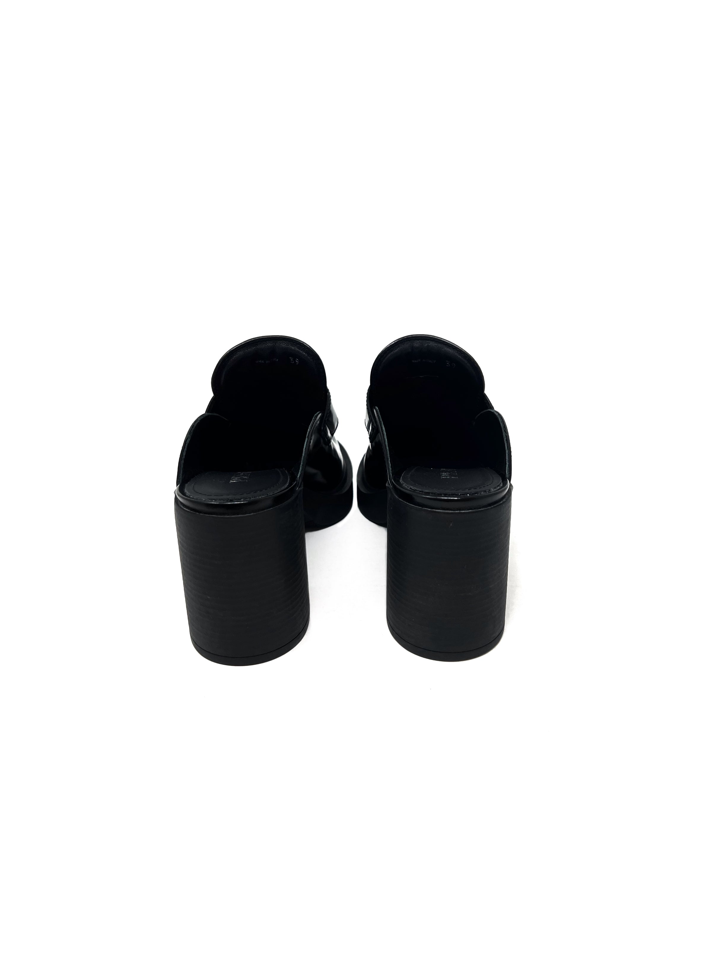 Chocolate Brushed Leather Platform Loafer Mules