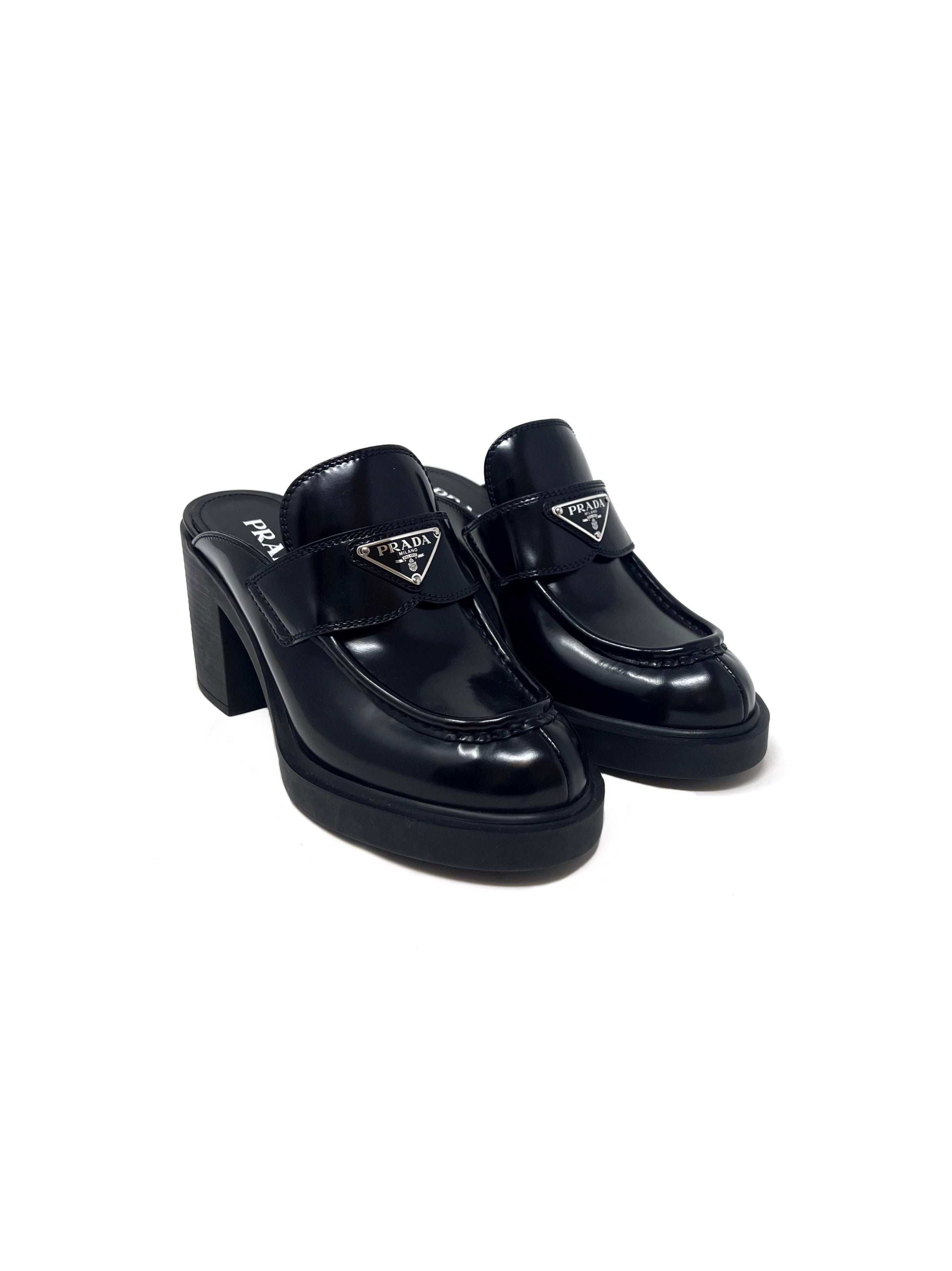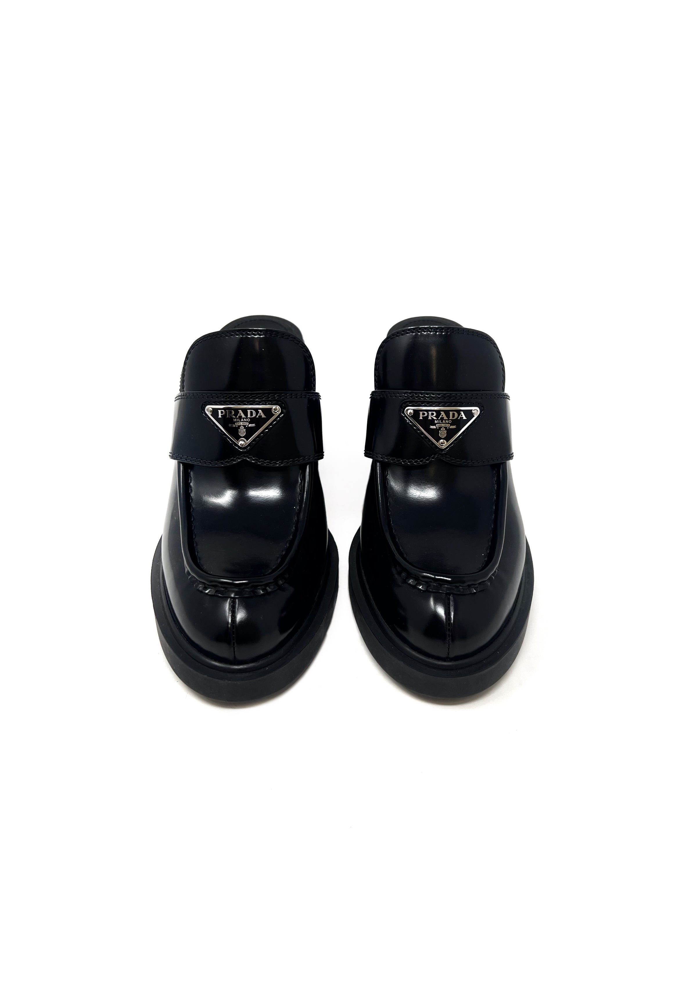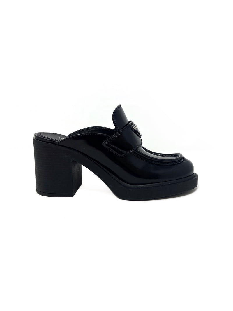 Prada Chocolate Brushed Leather Platform Loafer Mules