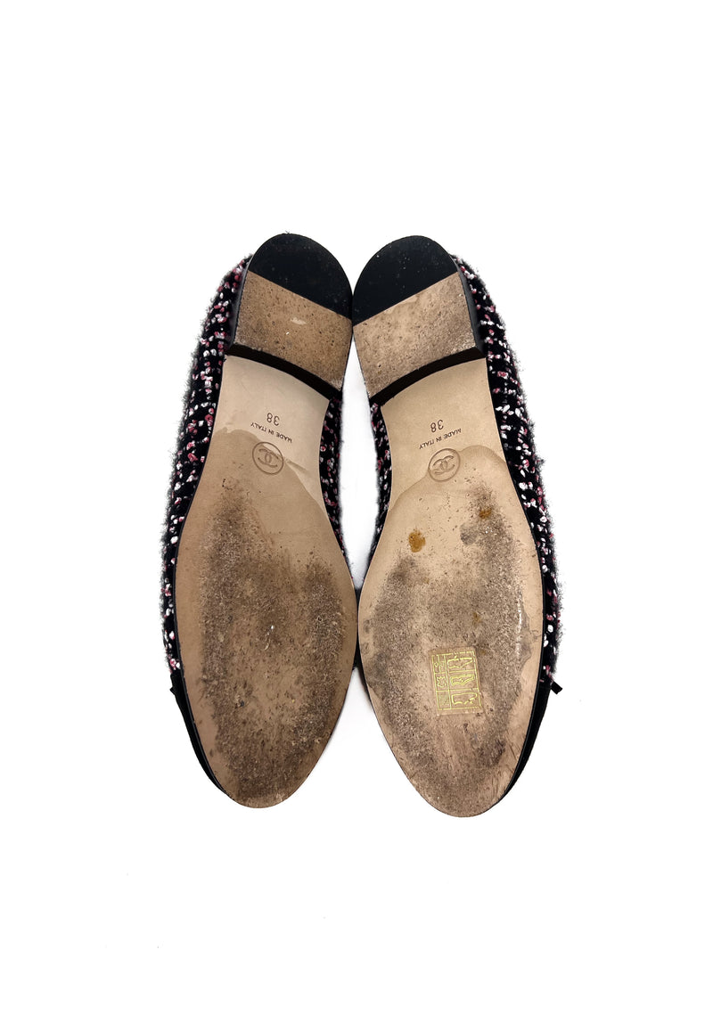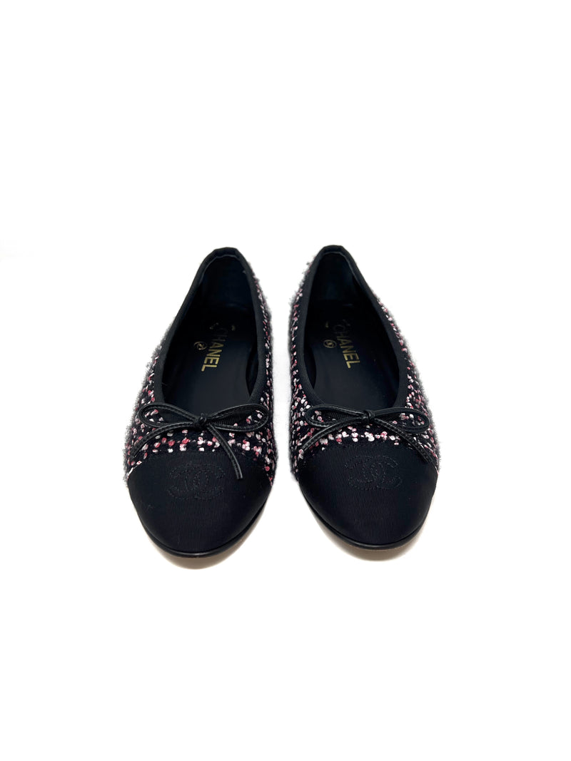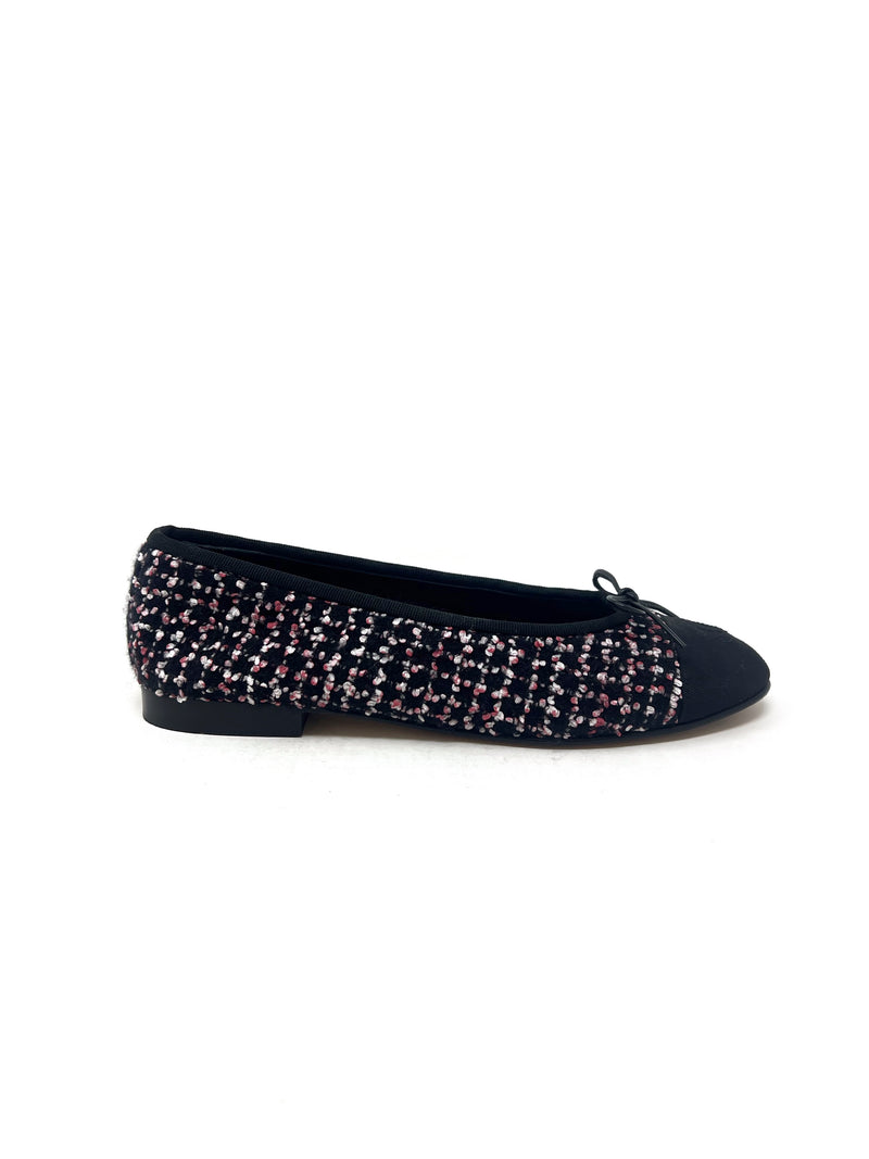 Chanel W Shoe Size 38 '22K Tweed & Grosgrain Cap Toe Ballet Flat