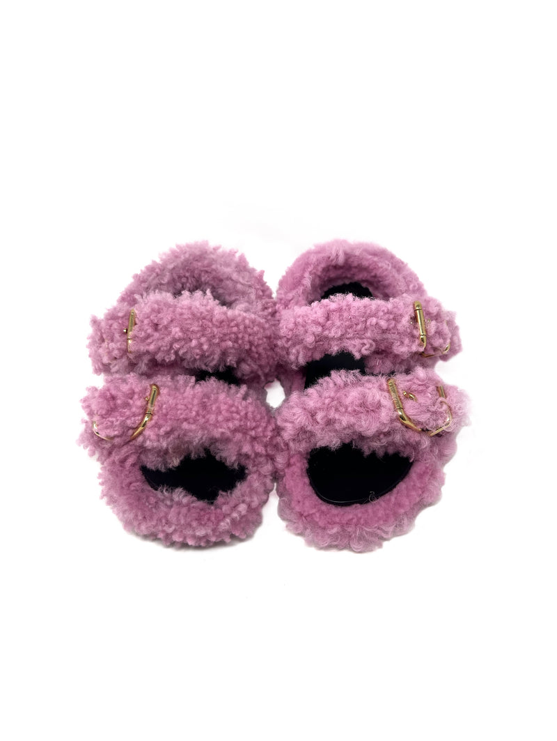 Marni Size 38 'Fussbett' Shearling Double Buckle Sandals