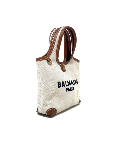 Balmain Luggage/Natural 'B-Army' Logo Canvas Mini Grocery Bag