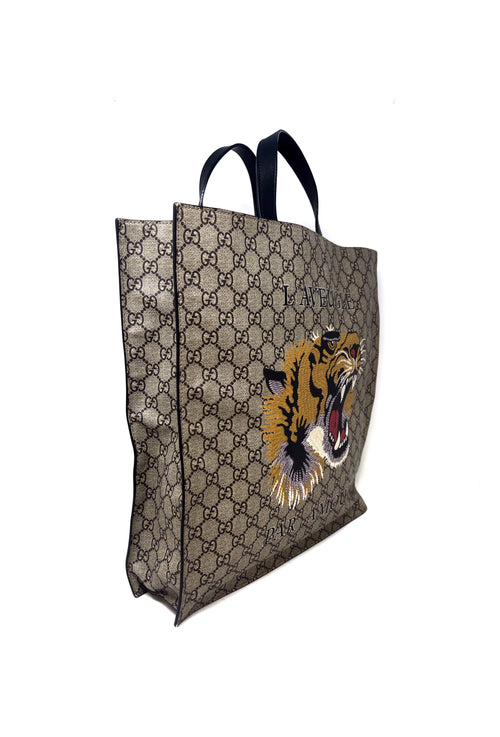 Gucci 'L'Aveugle Par Amour' GG Supreme Tiger Motif Soft Tote W/ Strap
