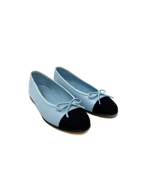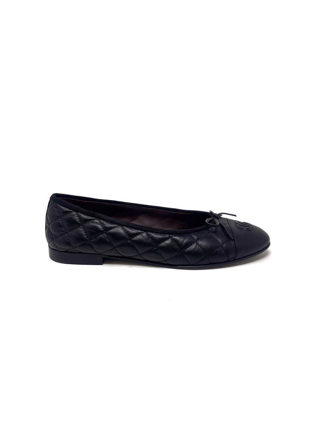 Chanel Black CC Logo Aged Calfskin Quilted Cap Toe Ballet Flats