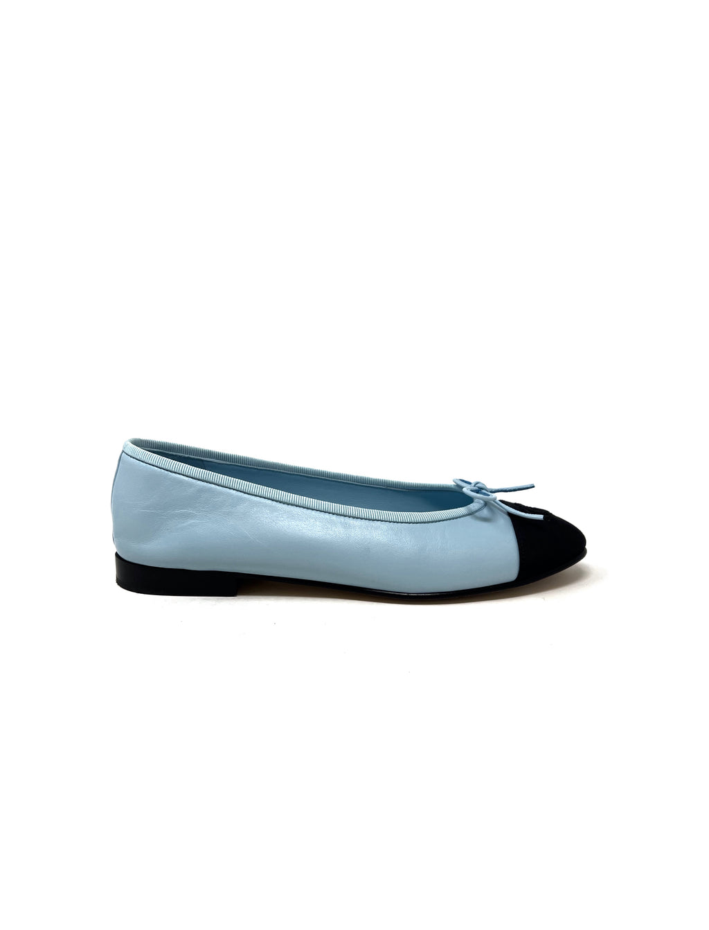 Chanel W Shoe Size 37 '24S Leather Grosgrain Cap Toe Ballet Flat