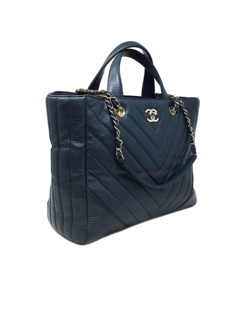Chanel Cornflower '17 Metallic Calfskin Chevron Statement Large Shopping Tote