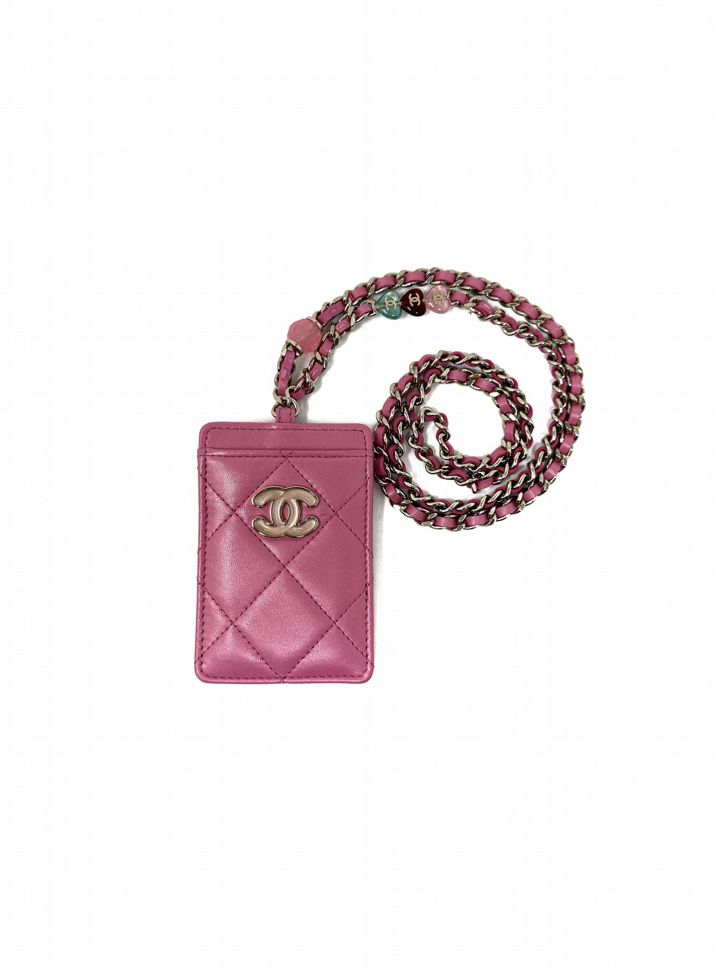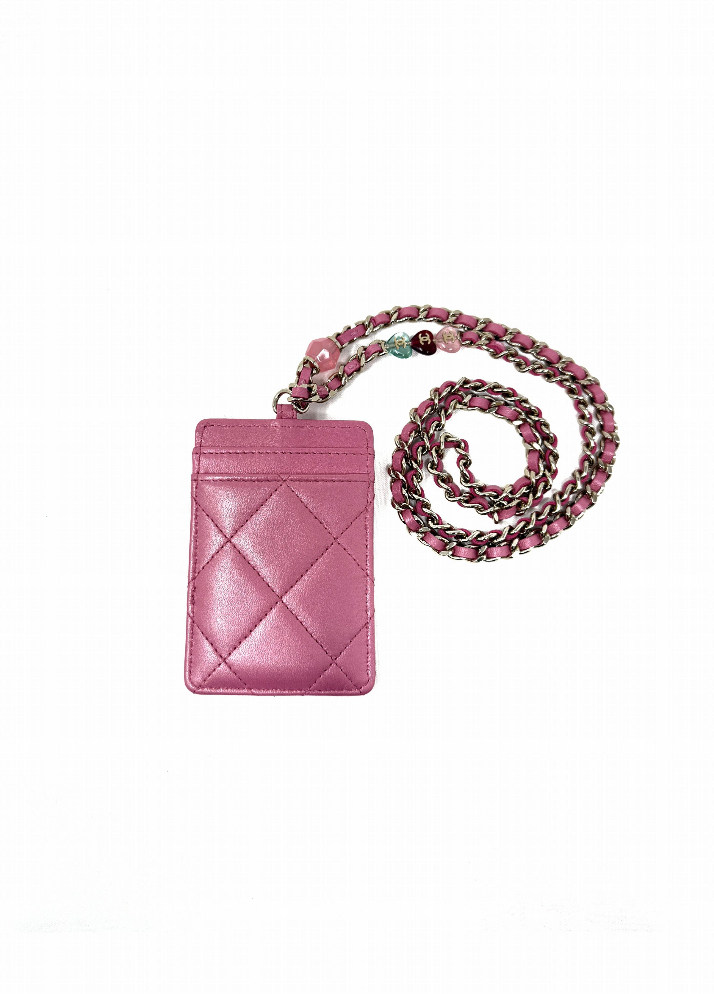 Chanel WB! '23P CC Beaded Detail Chain Lambskin Cardholder