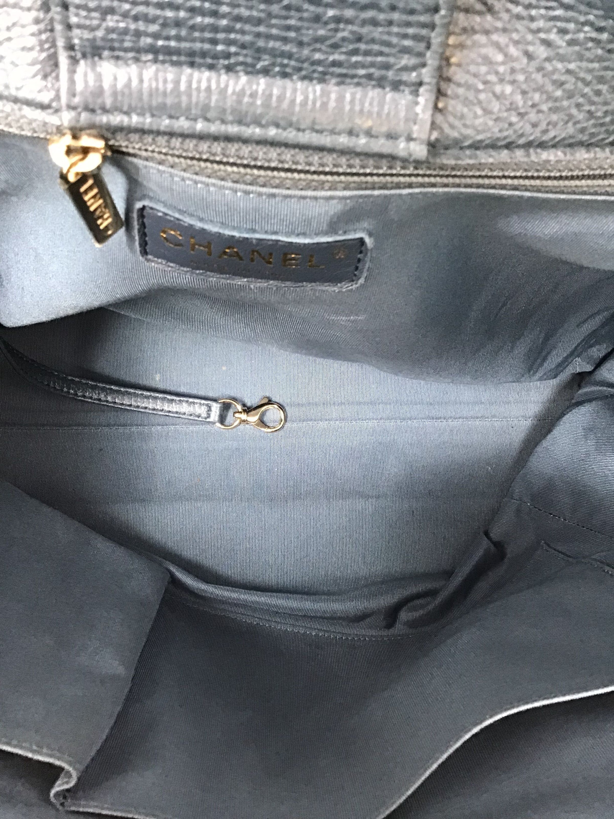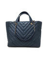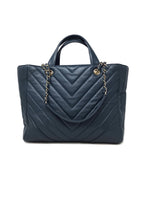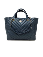 Chanel Cornflower '17 Metallic Calfskin Chevron Statement Large Shopping Tote