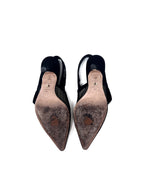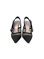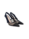 'J'Adior' Rhinestone Logo Mesh Slingback Pointed Toe Heels