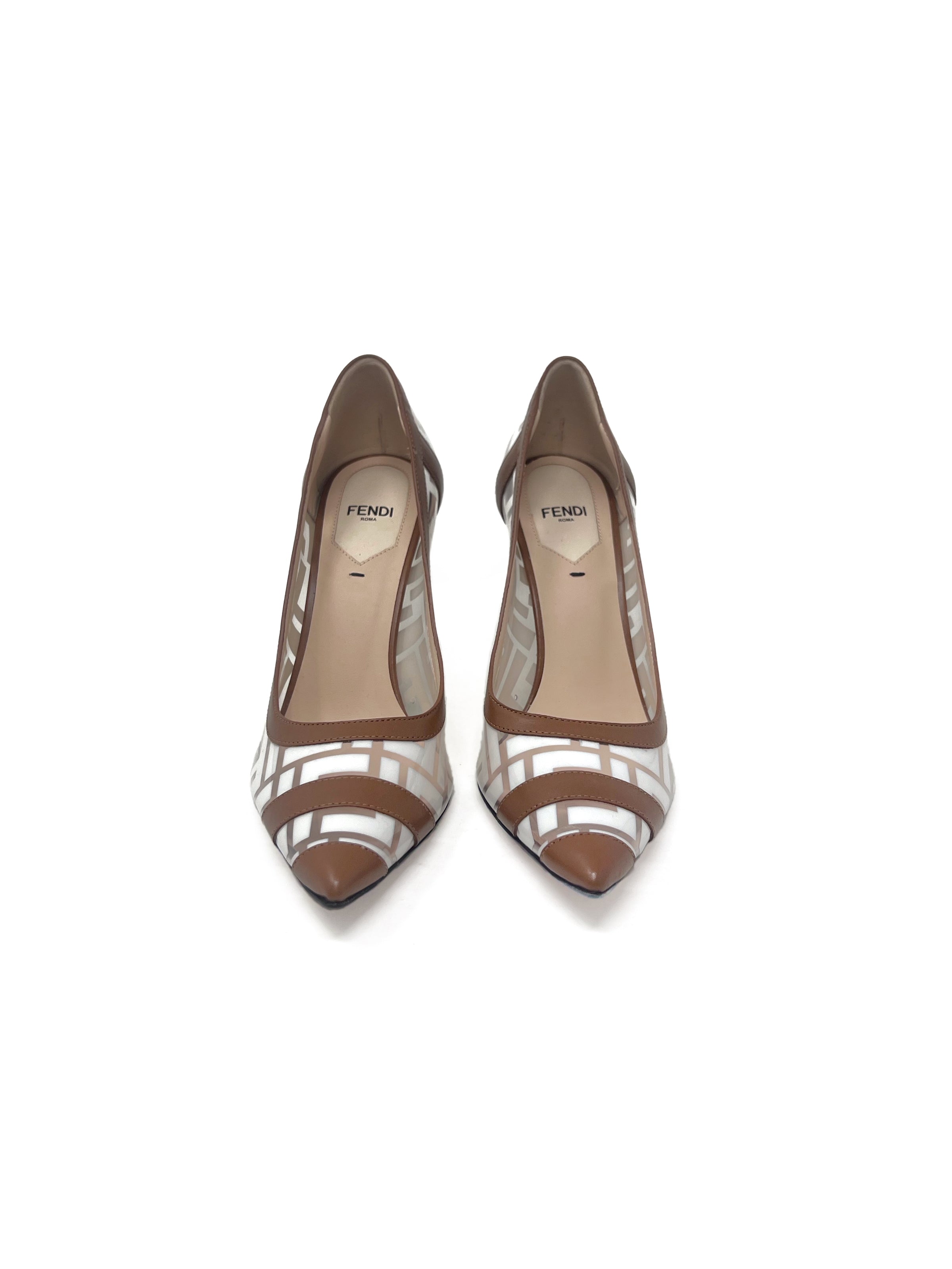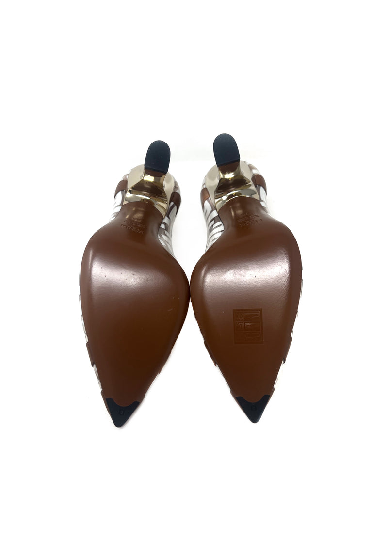 Fendi W Shoe Size 38 'Decollete' PVC Zucca Monogram Pointed Toe Heels