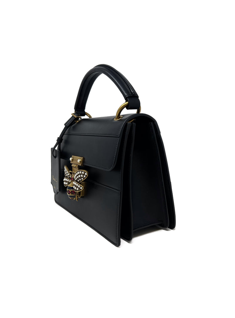WDB! '17 'Queen Margaret' Small Jeweled Bee Leather Top Handle Bag W/Strap