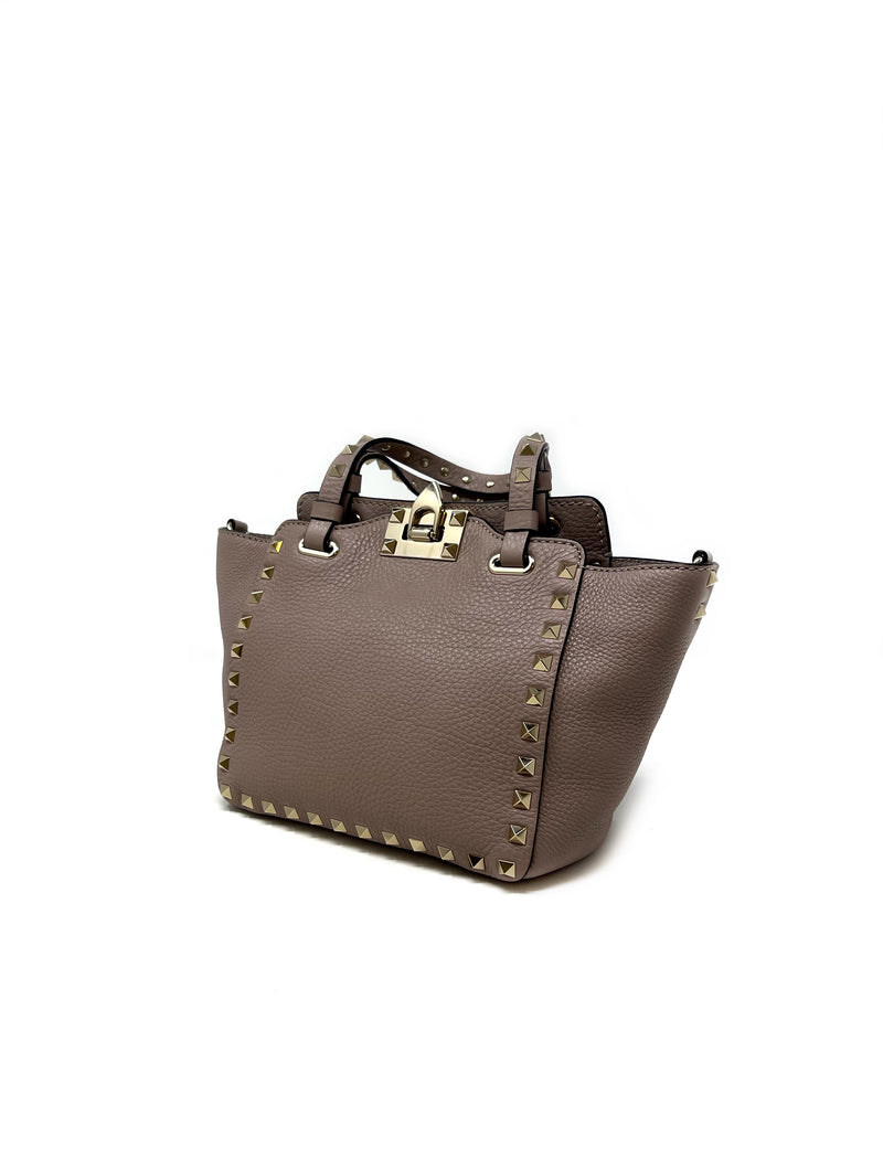 '23 Mini Rockstud Grainy Calfskin Bag W/Strap