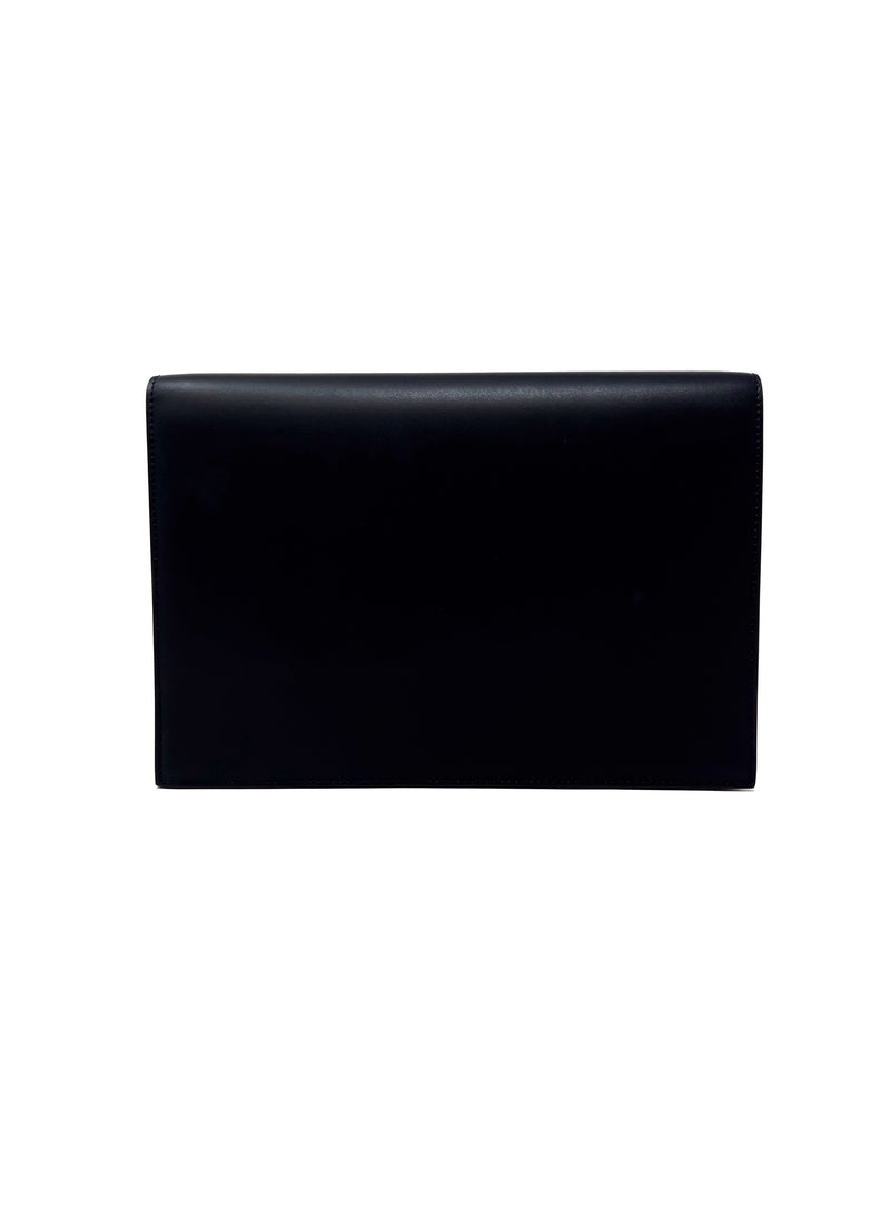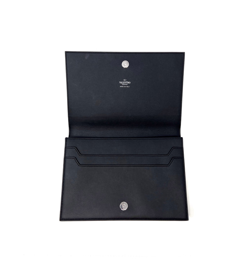 Valentino Black VLTN Logo Flap Clutch